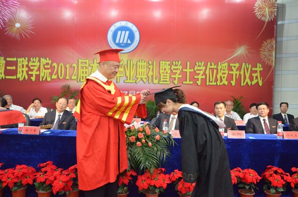 毕业生代表,计算机科学与技术系徐涛同学在发言中表达了对母校深深的眷念与对未来的美好憧憬。他说,大学四年是人生最为珍贵的记忆,四年的成长与喜悦,收获的不仅是知识,还有弥足珍贵的同学情、师生情。虽然毕业了,但时刻铭记老师的谆谆教诲,恪守“厚德博学,砺能树人”的三联校训,踏实做人、勤恳做事,将以优异的成绩为母校争光。
