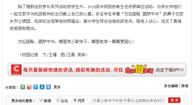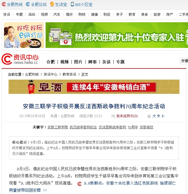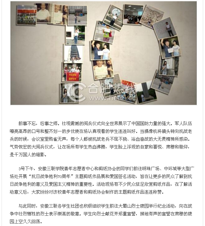 合肥热线:安徽三联学子积极开展反法西斯战争胜利70周年纪念活动