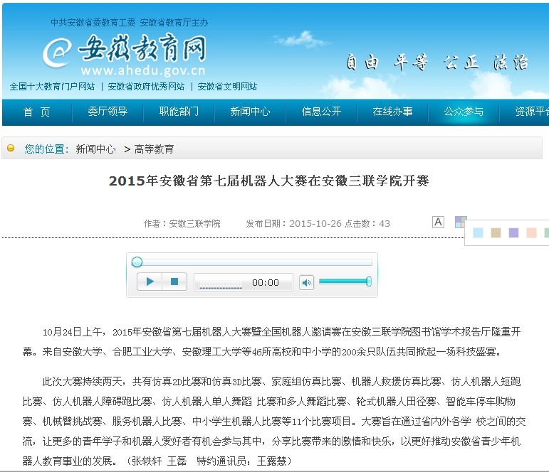 安徽教育网:2015年安徽省第七届机器人大赛在米兰app下载免费安装手机版开赛