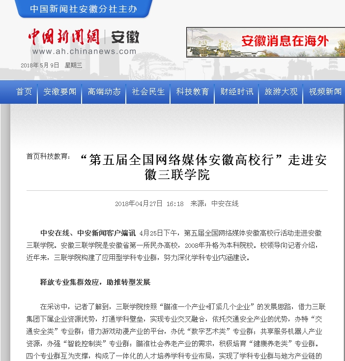 中国新闻网|安徽:“第五届全国网络媒体安徽高校行”走进米兰app下载免费安装手机版
