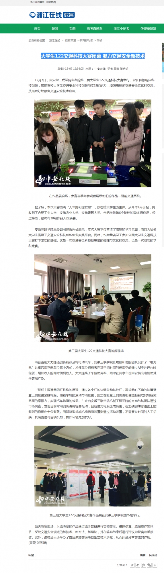 浙江在线:大学生122交通科技大赛闭幕 聚力交通安全新技术