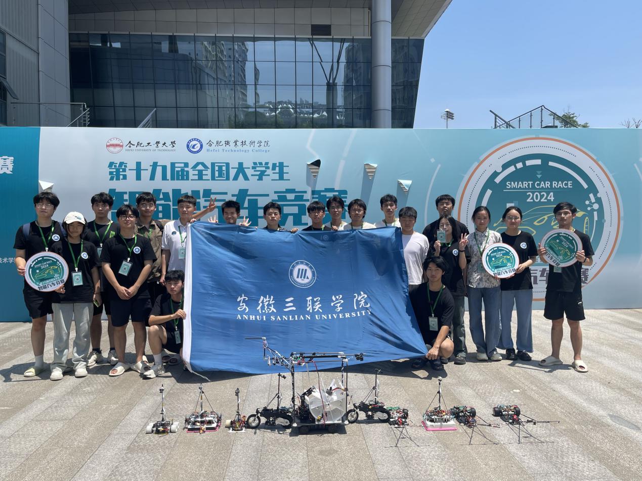 近两年,我校在该项赛事中获全国一等奖2项、二等奖5项,安徽省一等奖27项,其中电磁组连续三年获得安徽省冠军。我校学生编写的技术报告公开向参赛学生发布,竞赛水平得到了组委会及其他高校的高度肯定。2024年5月,安徽省秘书处合肥工业大学邀请我校指导教师及部分学生代表在合工大进行了竞赛技术分享,并获合工大师生一致好评。赛前中国科学技术大学、合肥工业大学、安徽大学、安徽中医药大学等多所高校师生多次来我校大学生创新实验室与三联学子深入学习交流,充分肯定了我校师生的技术及创新能力。