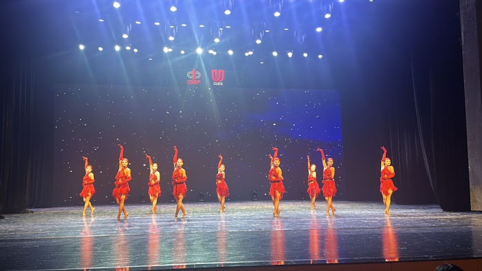 我校体育部教师金子涵组织了10名学生首次参赛。备赛期间,队员们始终以良好的精神面貌,全身心地投入到集训中。舞台上,她们更是将体育精神展现得淋漓尽致。经过5天的激烈角逐,我校舞蹈队凭借精湛舞技与默契配合,最终荣获大学甲组中级单人校园舞C类第二名。