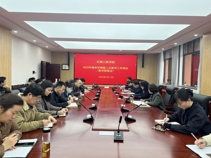 3月13日下午,学校在图书馆608会议室召开2025年春季学期第二次教学工作例会(教学联席会)。常务副校长江秀丽、副校长洪梅、薛峰参加会议,三院三部分管教学副院(部)长,马克思主义学院、体育部、质量管理与评估办公室、学生处、人力资源部等部门负责人,教务处相关人员参加会议。会议由副校长蔡文芬主持。