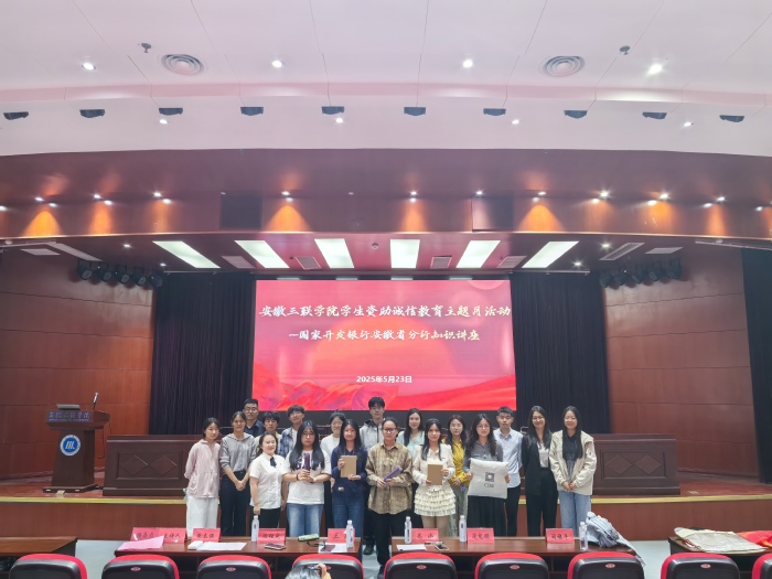 为深入普及助学贷款政策,增强学生诚信意识,提升学生风险防范能力,5月23日下午,国家开发银行安徽省分行高级经理王珺一行6人来校开展金融知识进校园暨诚信教育专题讲座,学生处相关人员及各院部师生代表200余人参加活动。
